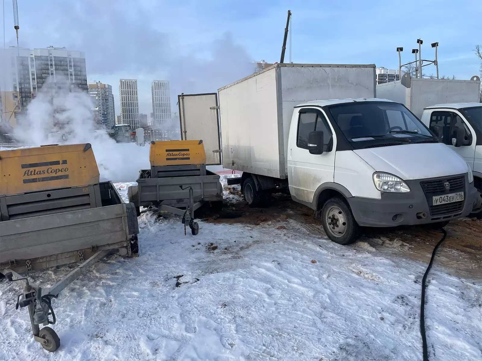 • Наши остановки мобильные и автономные. Применяем профессиональные парогенераторы достаточно небольших размеров. Он устанавливается на грузовом транспорте. Дополнительным достоинством является функционирование агрегата на дизельном топливе, позволяющее обеспечить мобильность прибора. Длина паровых шланг до двух сотен метров, что позволяет работать даже в труднодоступных местах;